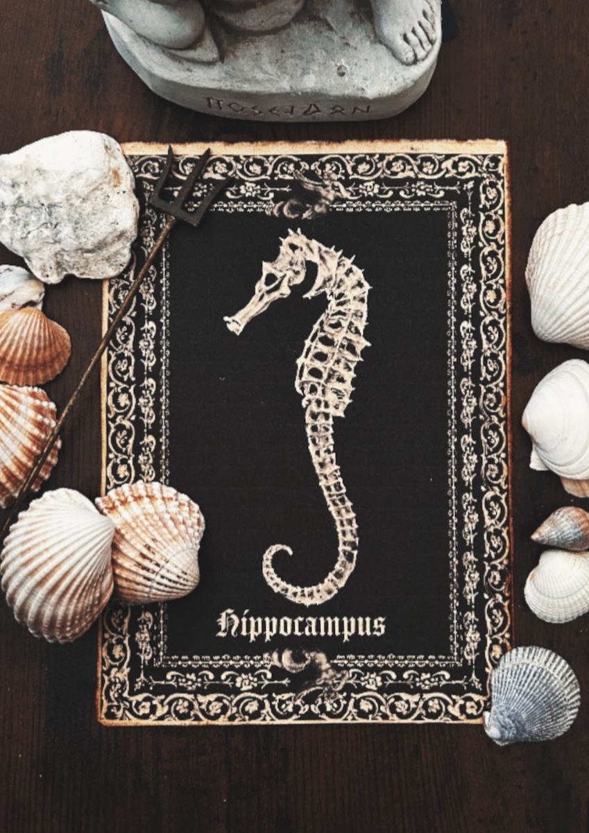 Squelette d’Hippocampe avec son cadre ornemental inspiré de motifs du XIXème siècle